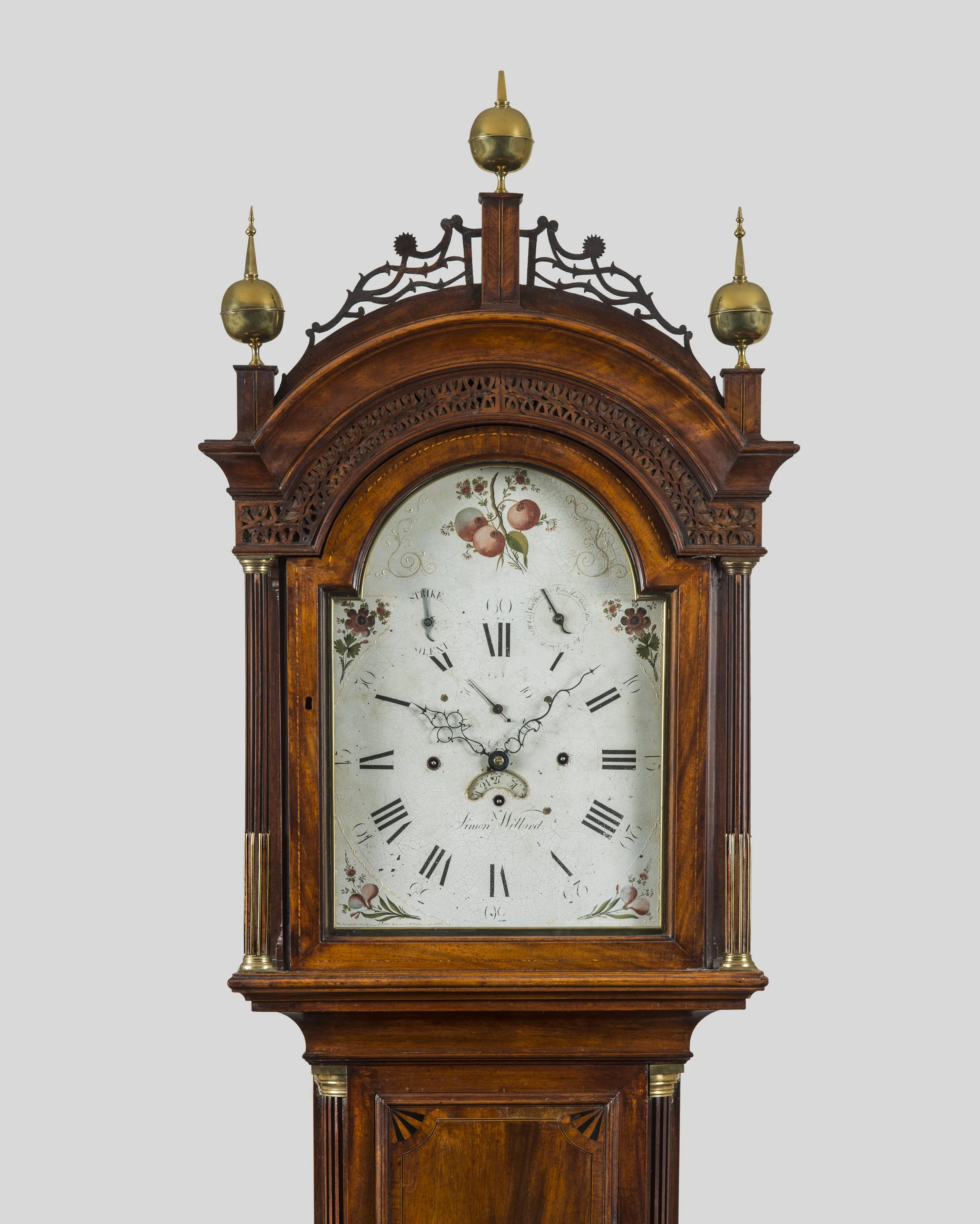 Stephen Badlam (1751–1815) constructed this case for Aaron Willard (1757–1844). Primary wood, mahogany.